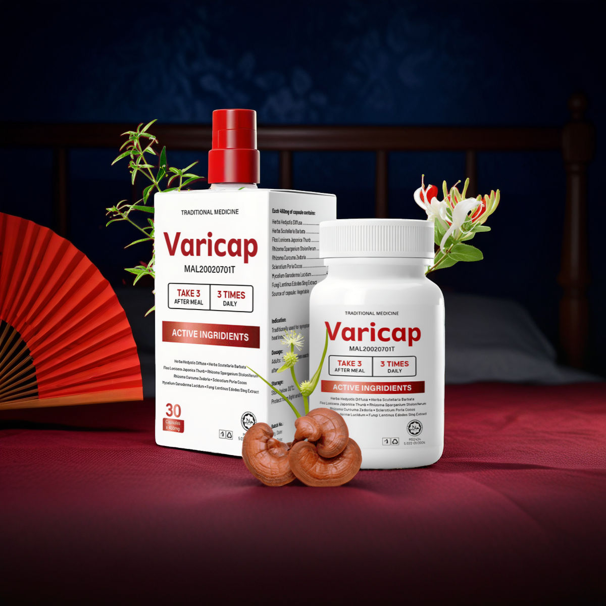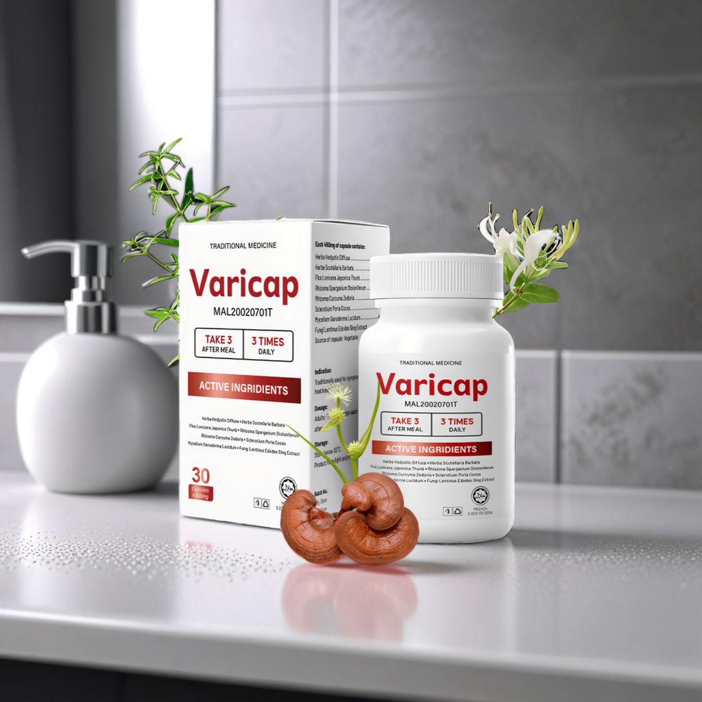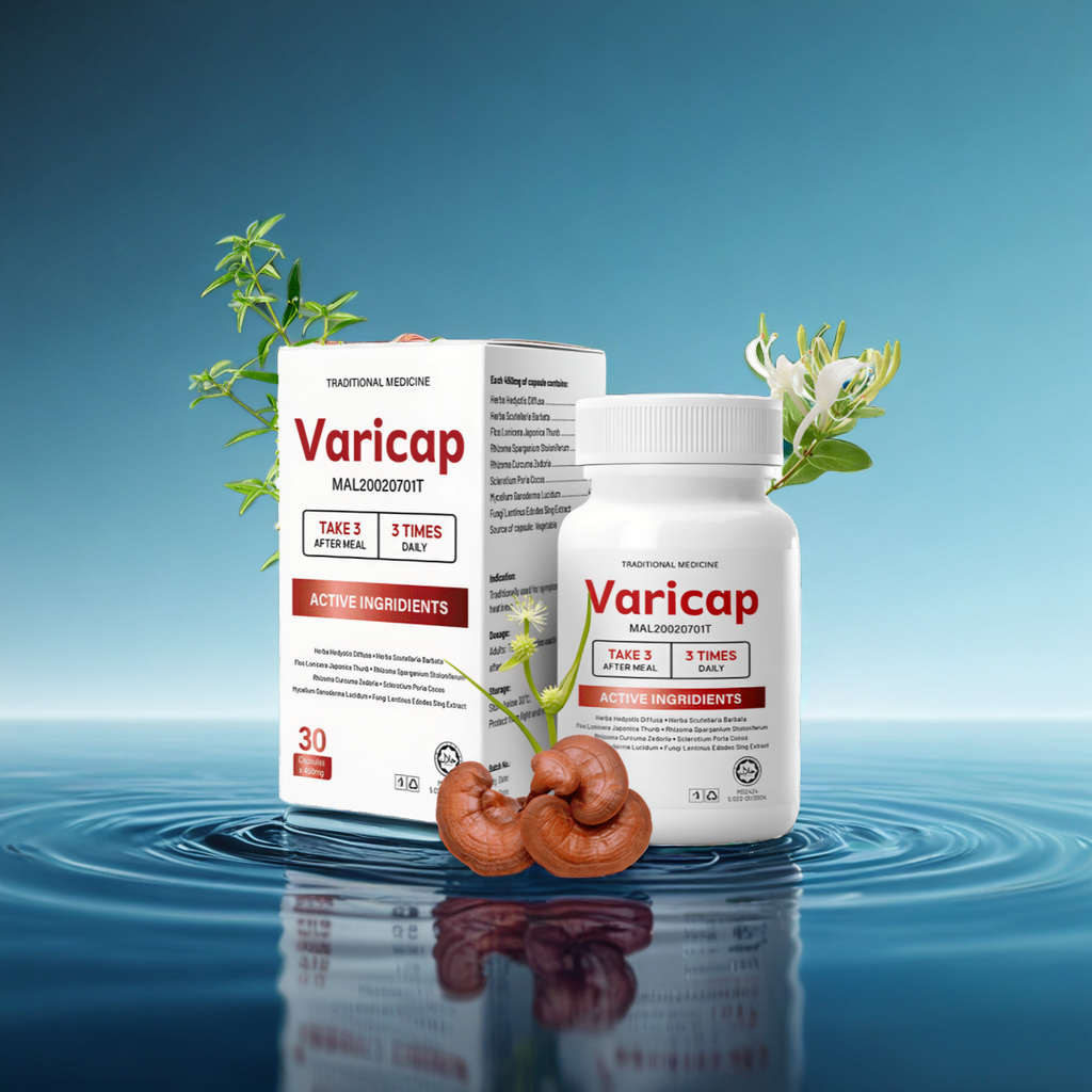 VARICAP, from the brand Varicap, is a specialized supplement crafted to enhance cardiovascular health by regulating blood pressure. Its distinctive formula comprises natural elements such as Lingzhi extract, green tea extract, royal jelly, Rhizoma zingiber officinale, and Ginkgo extract. These components work synergistically to bolster heart functionality and promote vascular well-being. By incorporating VARICAP into daily routines, individuals may potentially contribute to sustaining optimal blood pressure levels and diminishing the likelihood of blood clot formation.